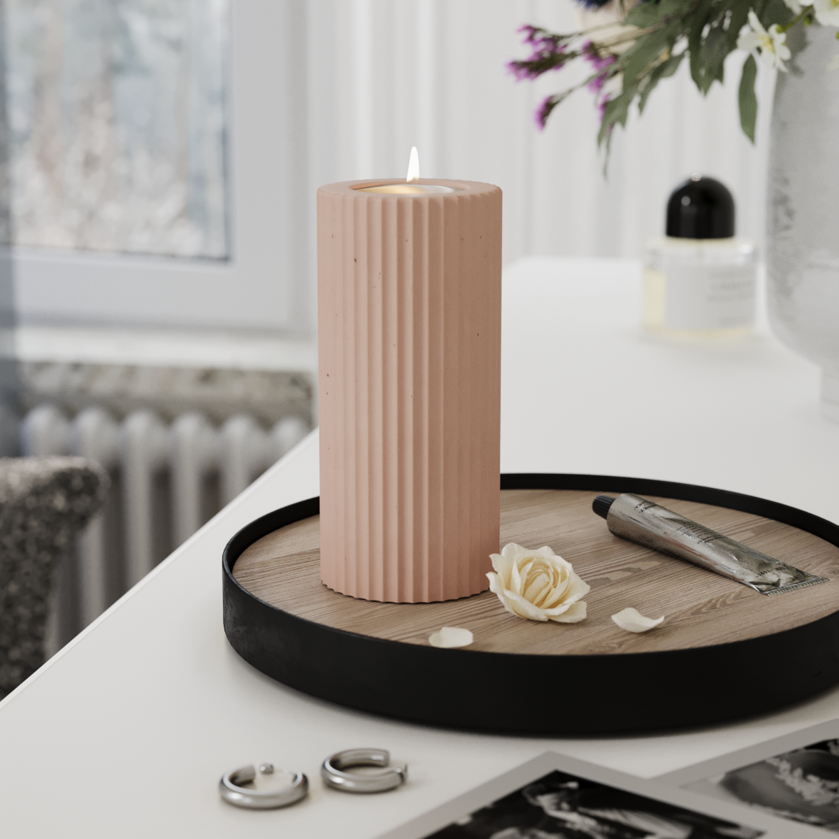 Chloe L — декоративный подсвечник для чайных свечей, изготовленный вручную из особо прочного архитектурного бетона.