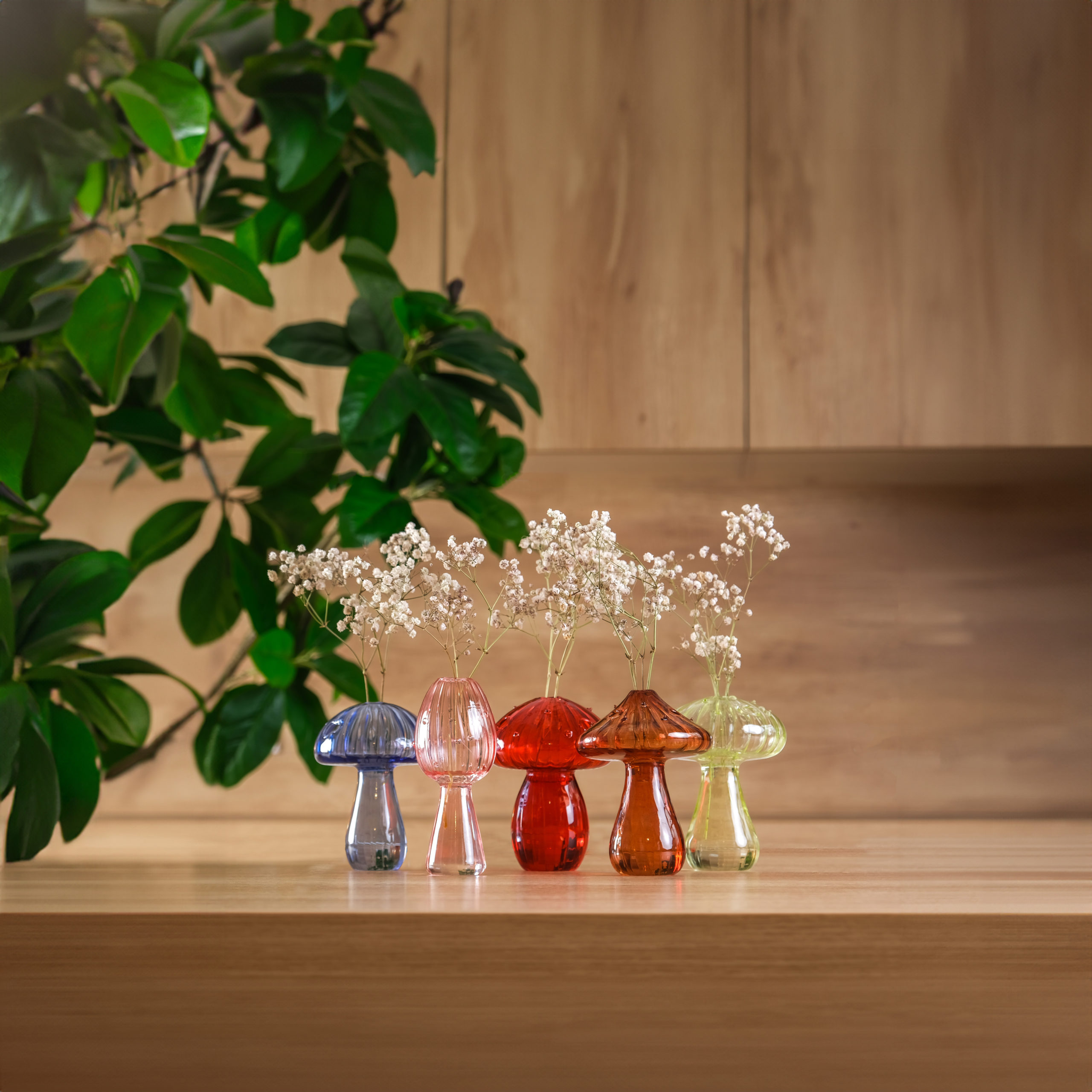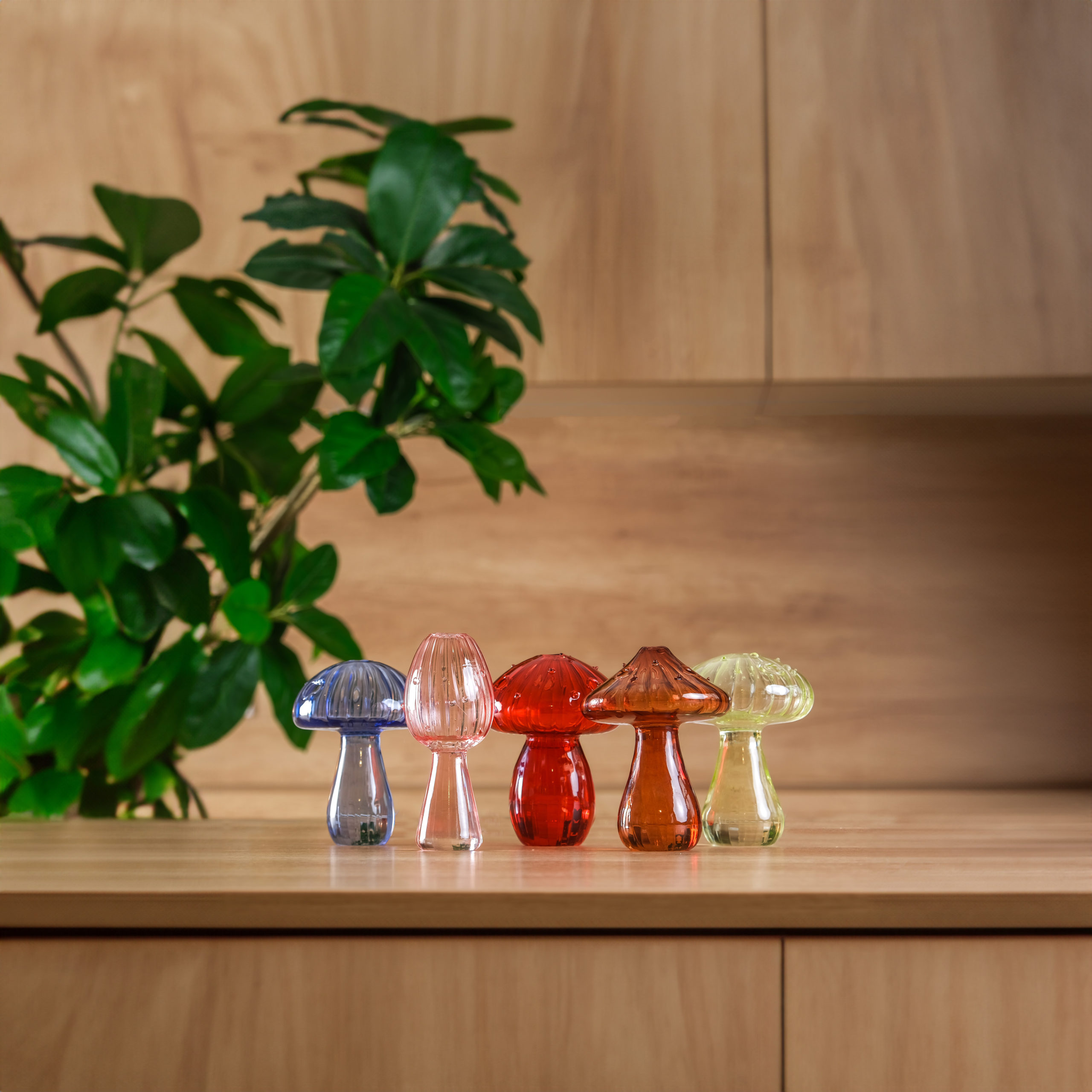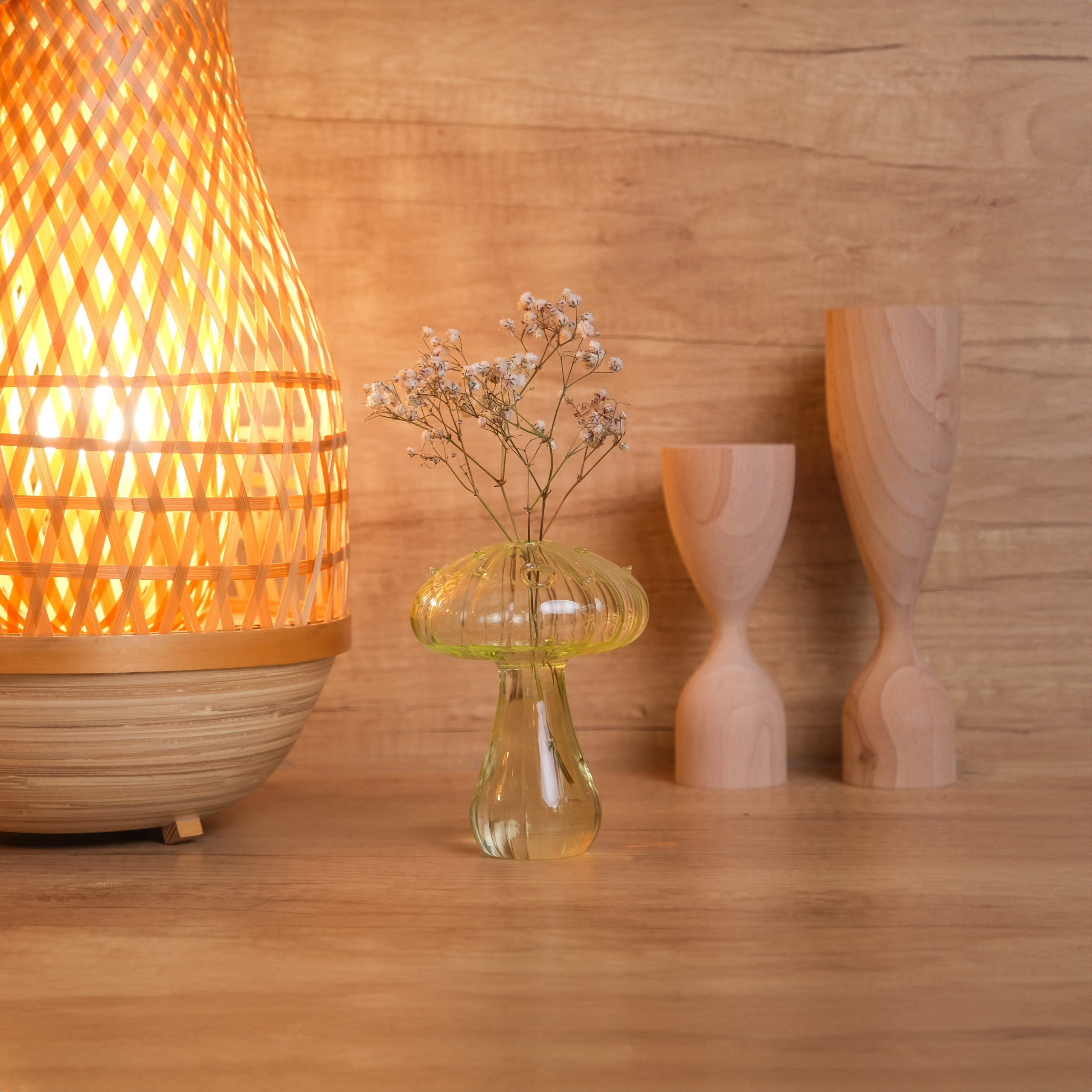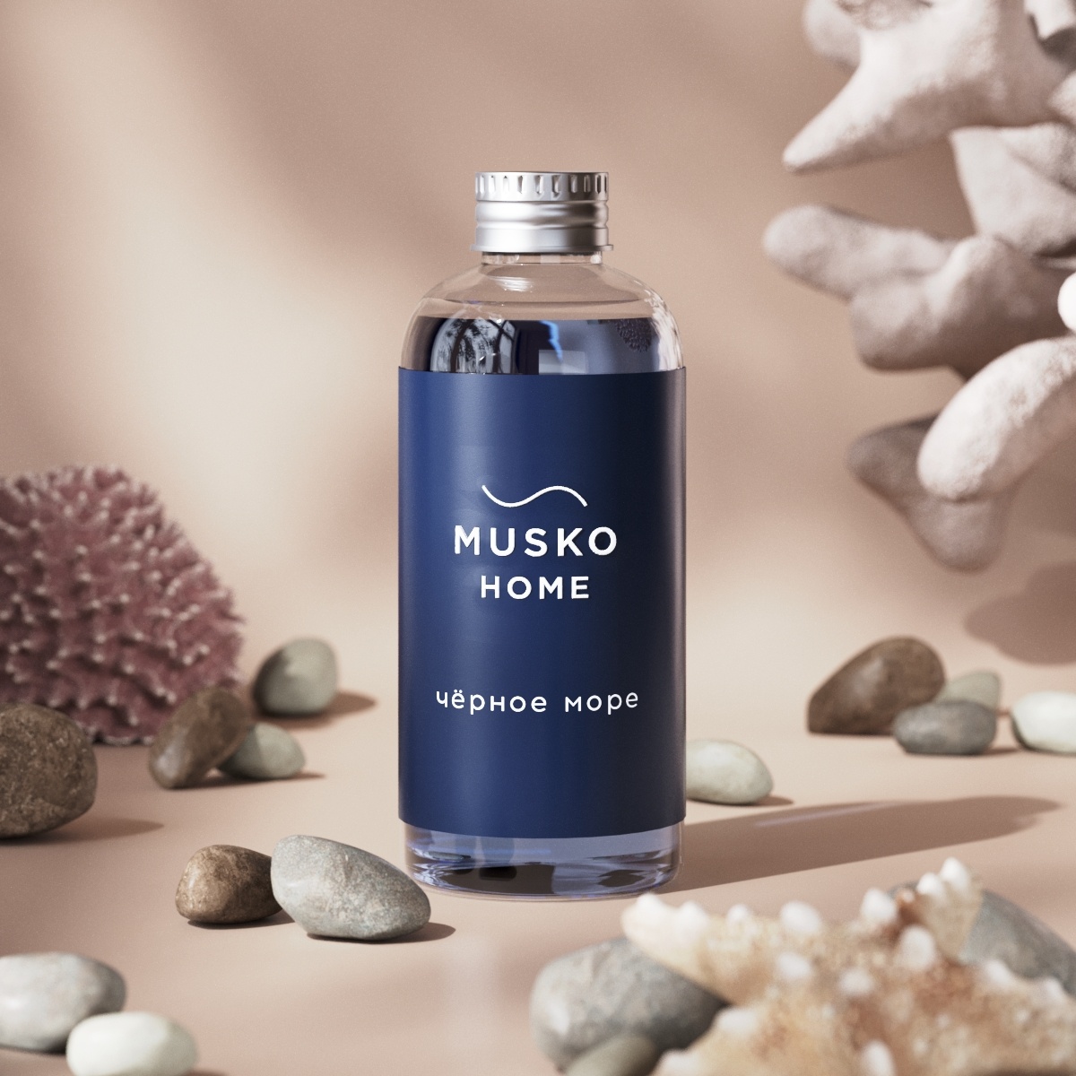 Ароматический диффузор для дома от MUSKO HOME — это комплект из стильной стеклянной вазочки в виде грибочка, флакона с ароматической композицией, изготовленной на основе качественных отдушек, и набор фибровых палочек черного цвета.