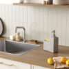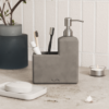 Дозатор можно использовать для хранения жидкого мыла или моющих средств. В стакане можно разместить зубные щетки и пасту, а также использовать его как подставку для губки.