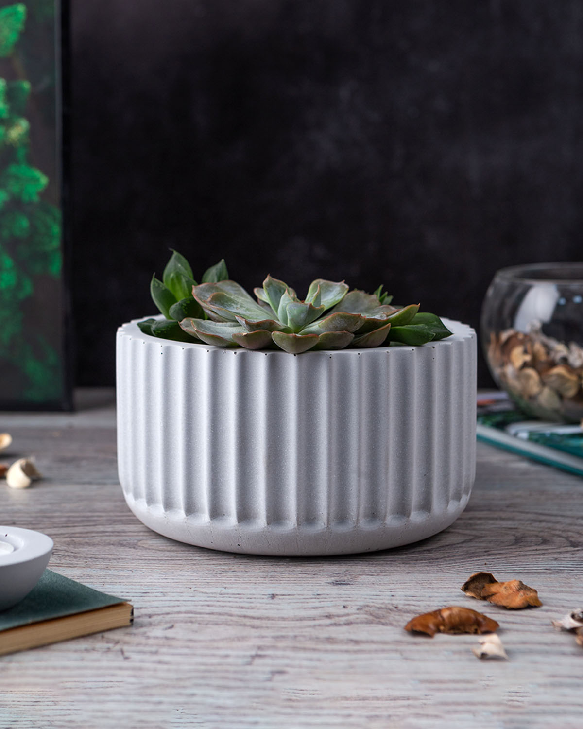 Chloe L — широкое и вместительное интерьерное кашпо для растений и суккулентов, изготовленное вручную из особо прочного бетона.