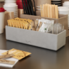 В органайзере имеются три отделения для аккуратного размещения предметов в нем: в них можно расположить салфетки стандартного размера, пакетики чая, зубочистки, а также стики с солью, сахарам или кофе.