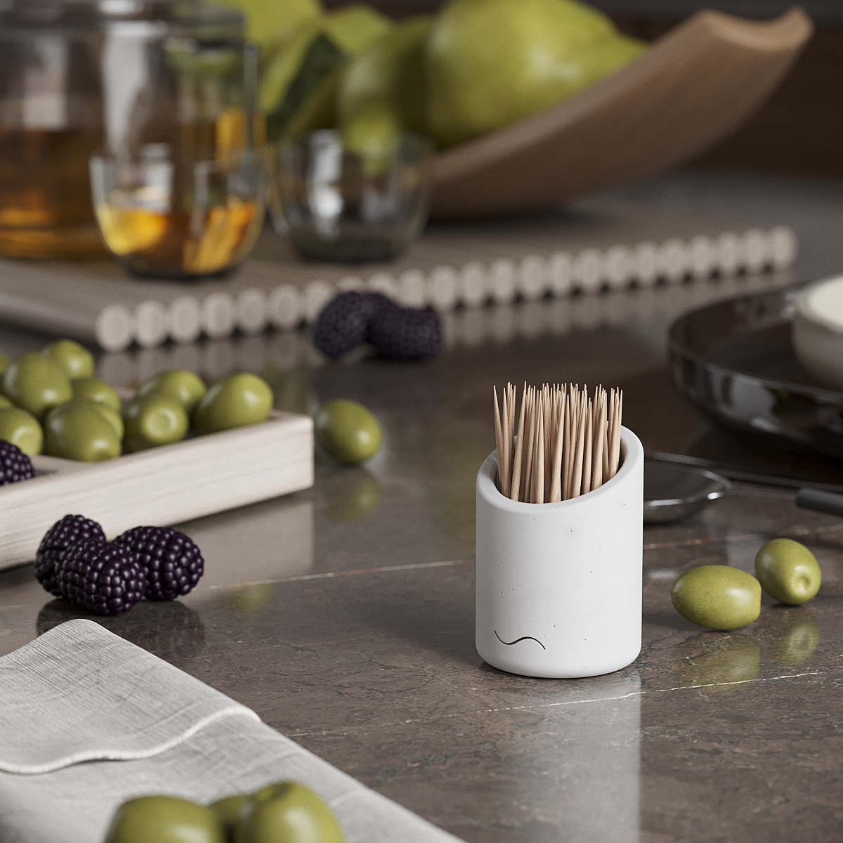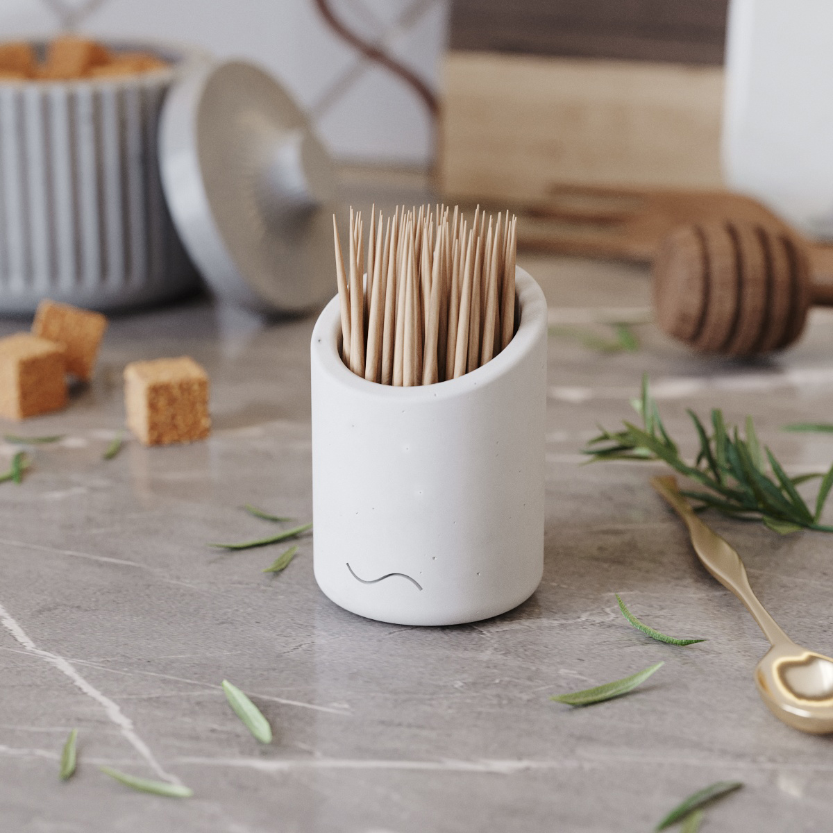 Подставка для зубочисток Fiona, изготовленная из архитектурного бетона — это отличный выбор для тех, кому нужен минималистичный, стильный и функциональный аксессуар для кухни или гостиной.