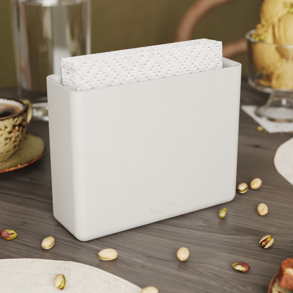Салфетница Emily — функциональный предмет интерьера. Изделие изготовлено вручную из архитектурного бетона и покрыто двухкомпонентным лаком. Ввиду особенностей материала каждое изделие имеет свою собственную неповторимую фактуру.