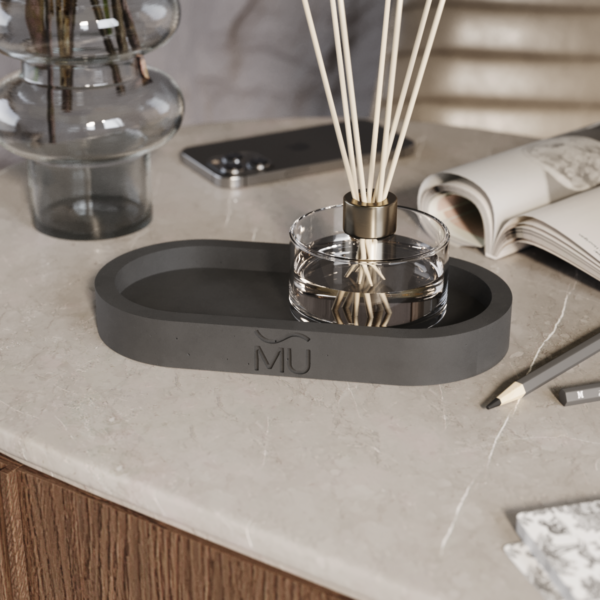 Lora S — универсальный интерьерный поднос, изготовленный вручную из прочного архитектурного бетона.