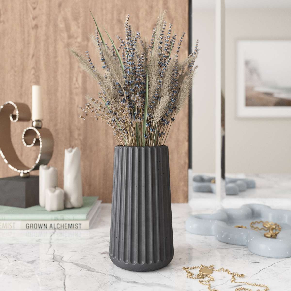 Chloe mini — интерьерная ваза из бетона для сухоцветов, изготовленная вручную из прочного архитектурного бетона.